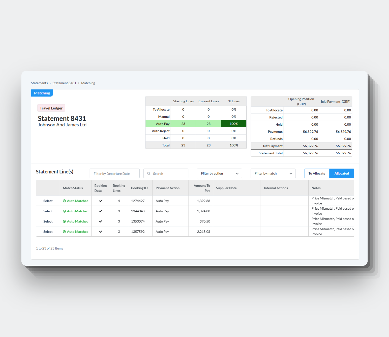 Automated payment matching - intelligent algorithms automatically match ~90% of statement lines, saving hundreds of hours of manual effort