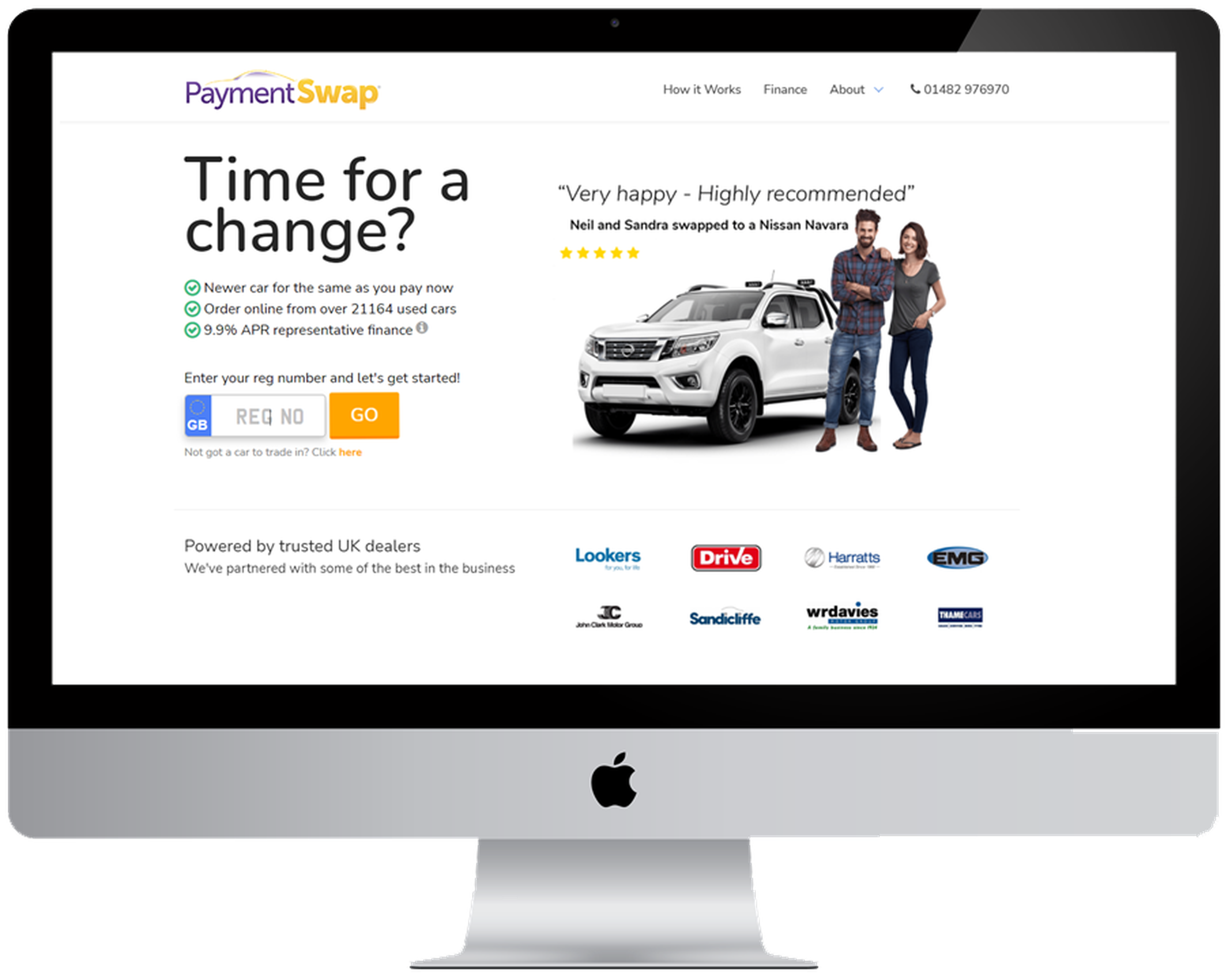 Payment Swap is a first-of-its-kind click-and-collect platform designed to transform how consumers upgrade their cars. The goal was simple - make car buying faster, simpler, and entirely online. Within seconds, drivers can view newer cars that match or beat their current monthly payment, complete finance approval digitally, and collect their new car in under twenty minutes.